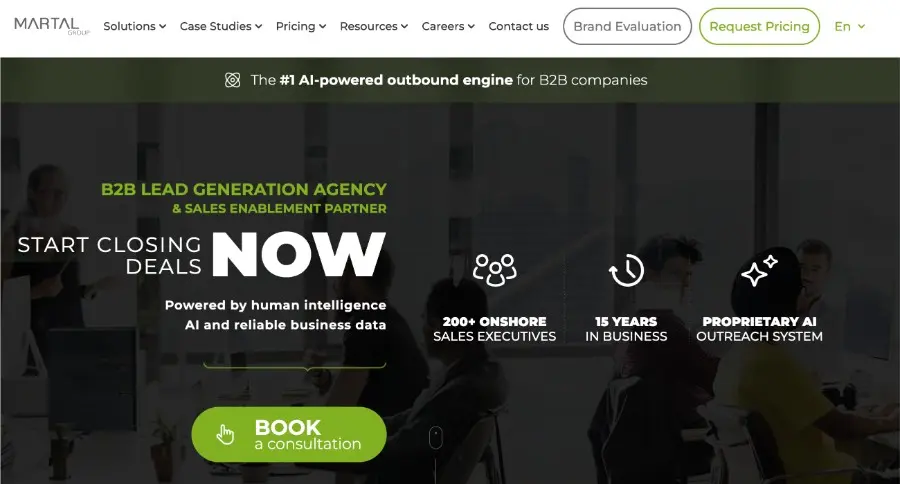 Martal Group combines a global team of more than 200 experienced sales development representatives with AI-driven prospecting tools to execute intent-based outreach at scale.