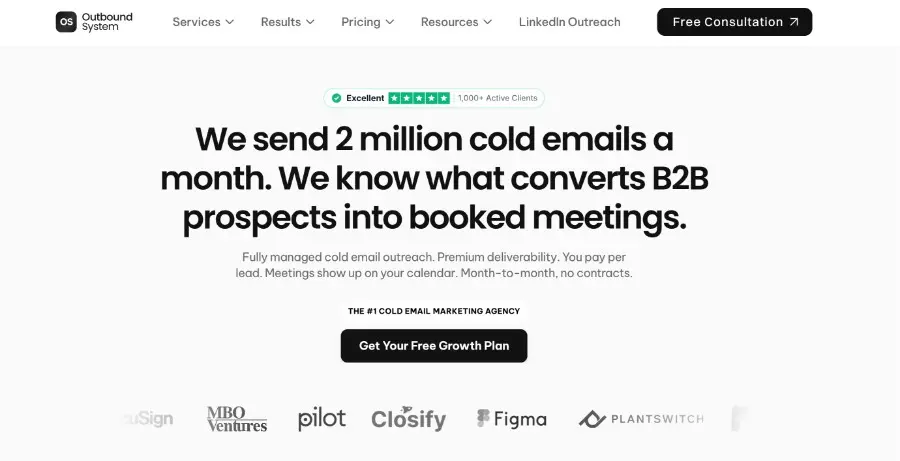 Outbound System is a fully managed cold email agency trusted by more than 1,000 active B2B clients across industries, including SaaS, professional services, finance, and manufacturing.