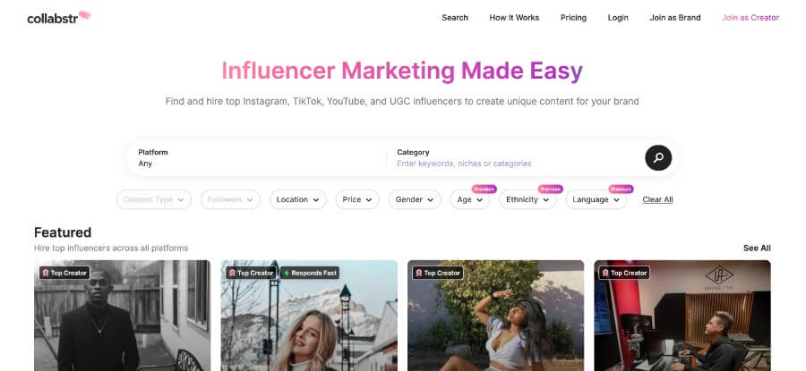 With a super-easy to use interface and a transparent system, Collabstr is a great choice for small businesses and startups who are new to influencer marketing.
