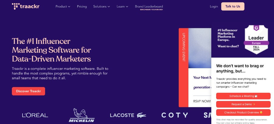 …Traackr is the go-to platform for big enterprises running global influencer programs. Its focus is on compliance, scalability and campaign governance - and it gives brands a deep understanding of how their campaigns are performing, as well as the tools to keep an eye on whats happening in different regions. Its powerful analytics engine lets large multinational corporations keep a close eye on brand consistency, and make sure they’re aligning with regulations in each area.